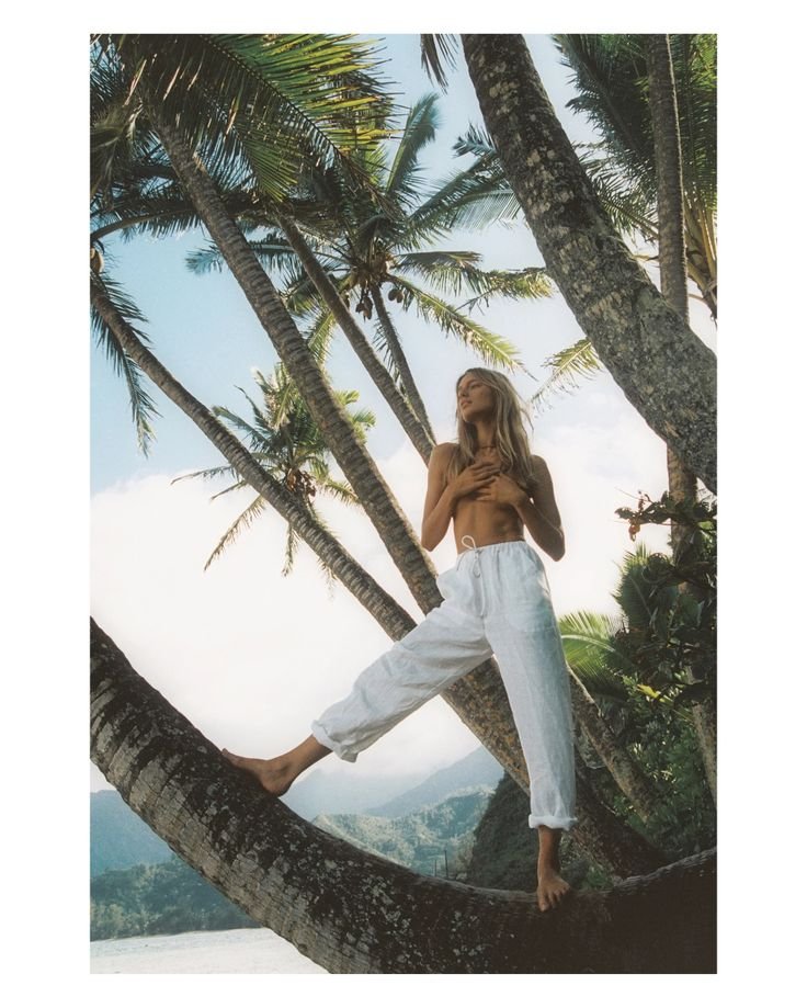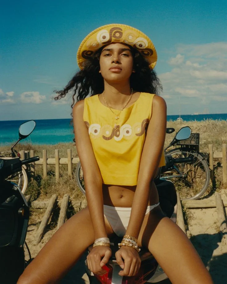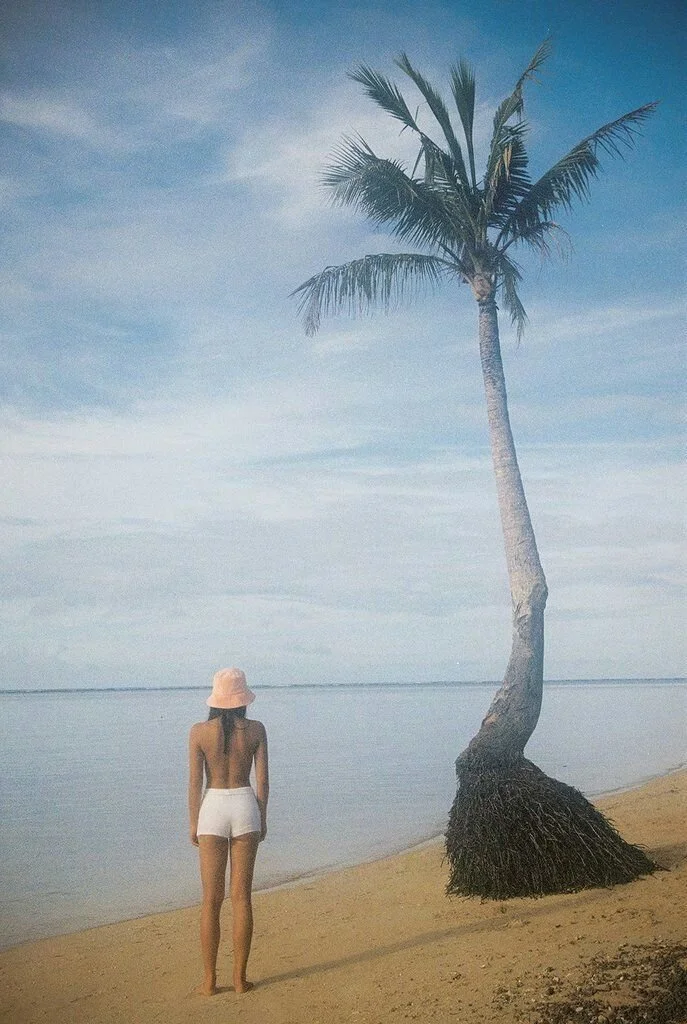 The photography will blend candid, lifestyle-oriented moments with thoughtfully posed, product-focused shots to create a balanced visual narrative. The model will be captured in a relaxed, natural style—evoking the feeling of being on a carefree holiday—evocative of the Slim Arons style docu-photography. These spontaneous, unguarded moments will be complemented by more intentional, product-focused compositions that showcase the collection's details against the rich textures and tonal backdrops of the Corn Islands.